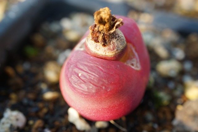 Aloinopsis schooneesii 赤花唐扇塊根 種子25粒 種子から塊根になるのが早く3年目でそこそこの苗になります。 栽培は難しくなく、早く大きくなり見ごたえの成る苗になるでしょう。 花は春に咲きます。それから、軽めの休眠に入る様です。